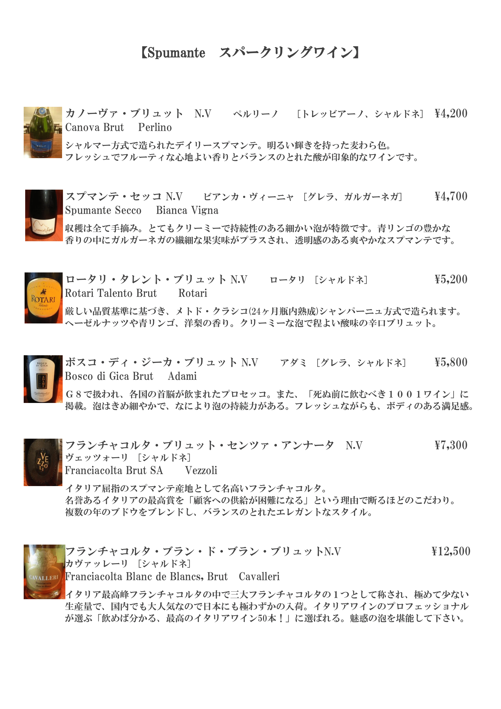 spumante/スパークリングワイン
