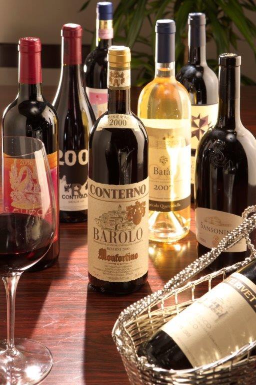 オステリア・パージナは、お料理だけでなく、赤・白・泡と、200種類以上のイタリアワインをご用意。いろいろなブドウの種類、ジャンルをそろえておりますので、お料理に合わせてお選びいただけます。また、ワインだけでなく、グラッパも6種類以上。透明な蒸留酒から、樽熟成されたものまで取り揃えております。お食事の初めからドルチェ、食後酒に至るまで飽きることなくお楽しみいただけます。